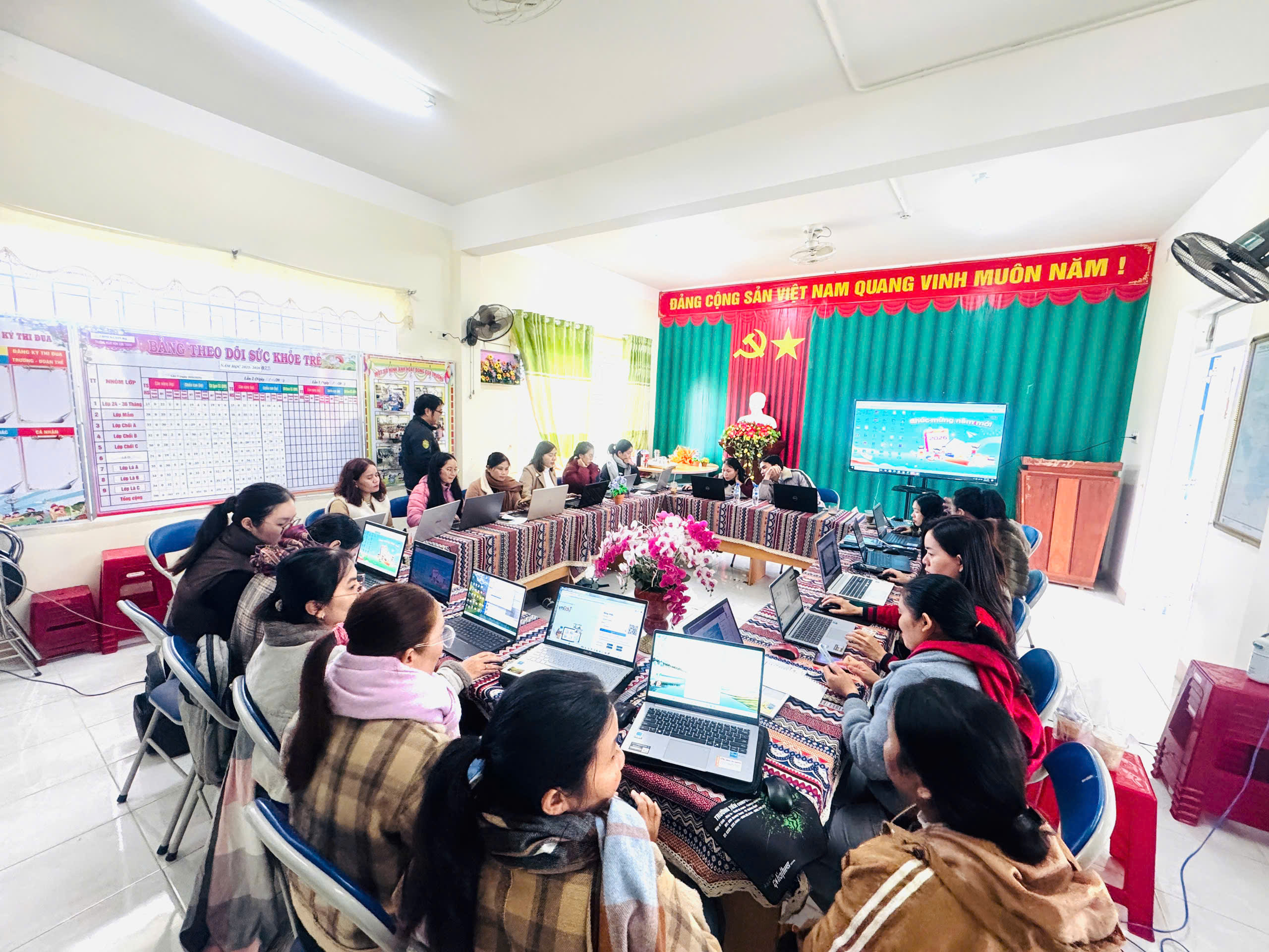 Ngày 10/01/2026, Trường Mầm non Sơn Thành tổ chức tập huấn công nghệ thông tin cho cán bộ quản lý, giáo viên, nhân viên nhà trường. Buổi tập huấn tập trung vào các nội dung thiết thực, góp phần nâng cao kỹ năng ứng dụng CNTT và thúc đẩy chuyển đổi số trong hoạt động chăm sóc – giáo dục trẻ.
